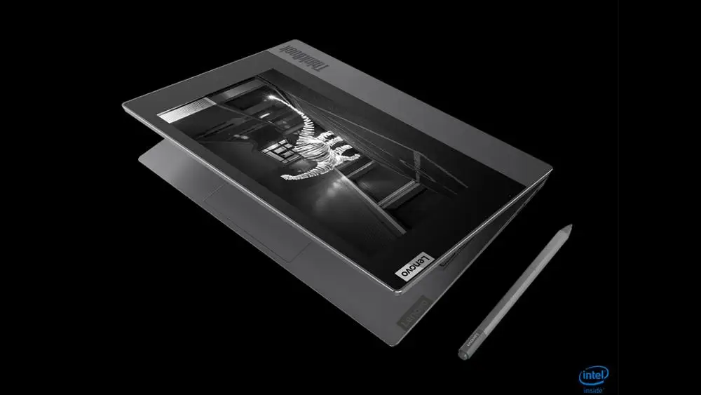 The notebook’s primary display is a 13.3 inch, 2560 x 1600 pixel LCD screen with support for up to 400-nits of brightness. But what really makes this laptop stand out is the E Ink display on the lid.