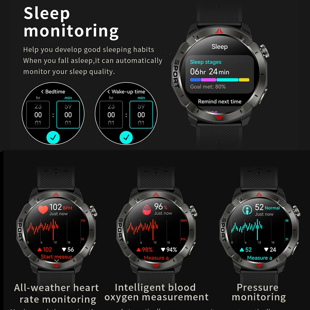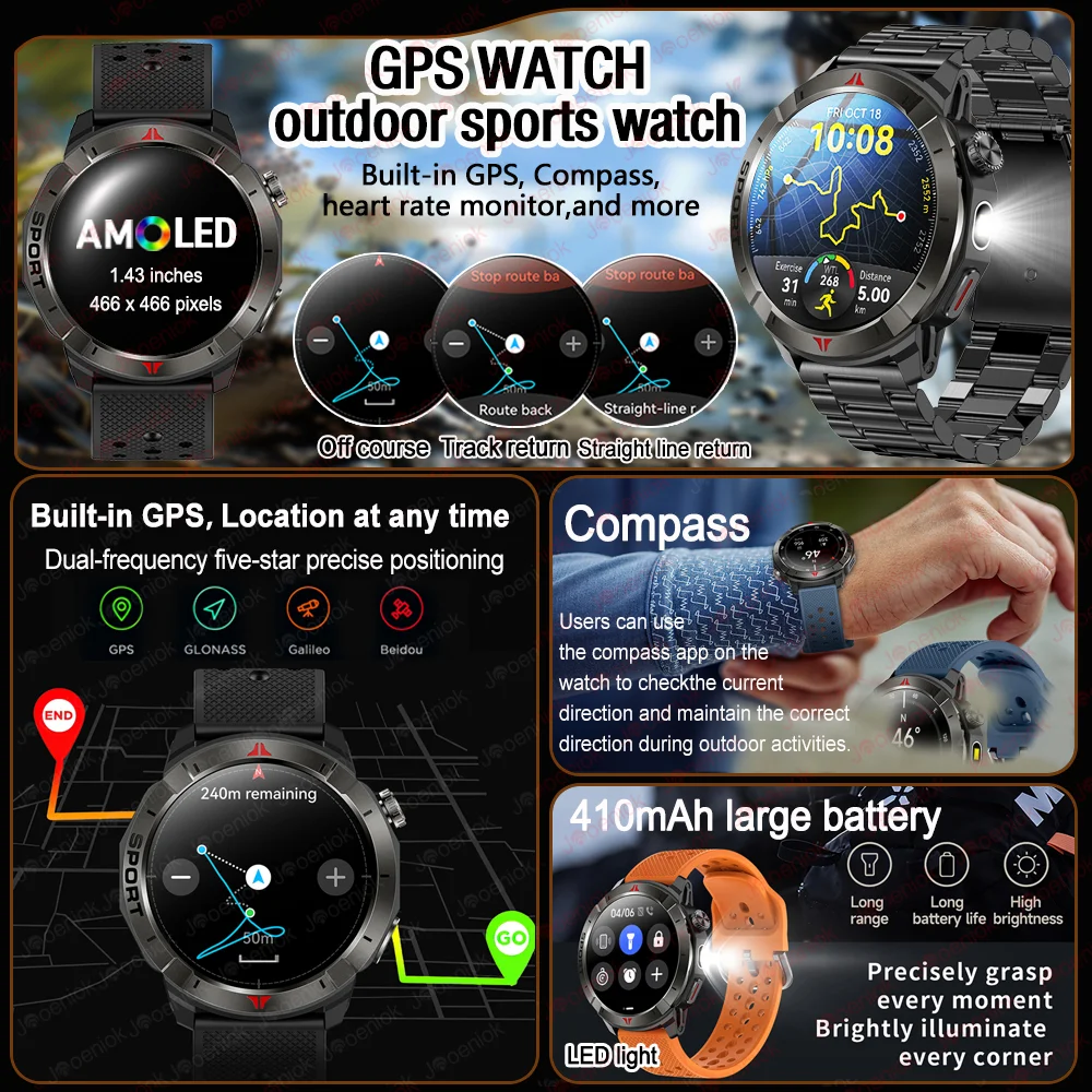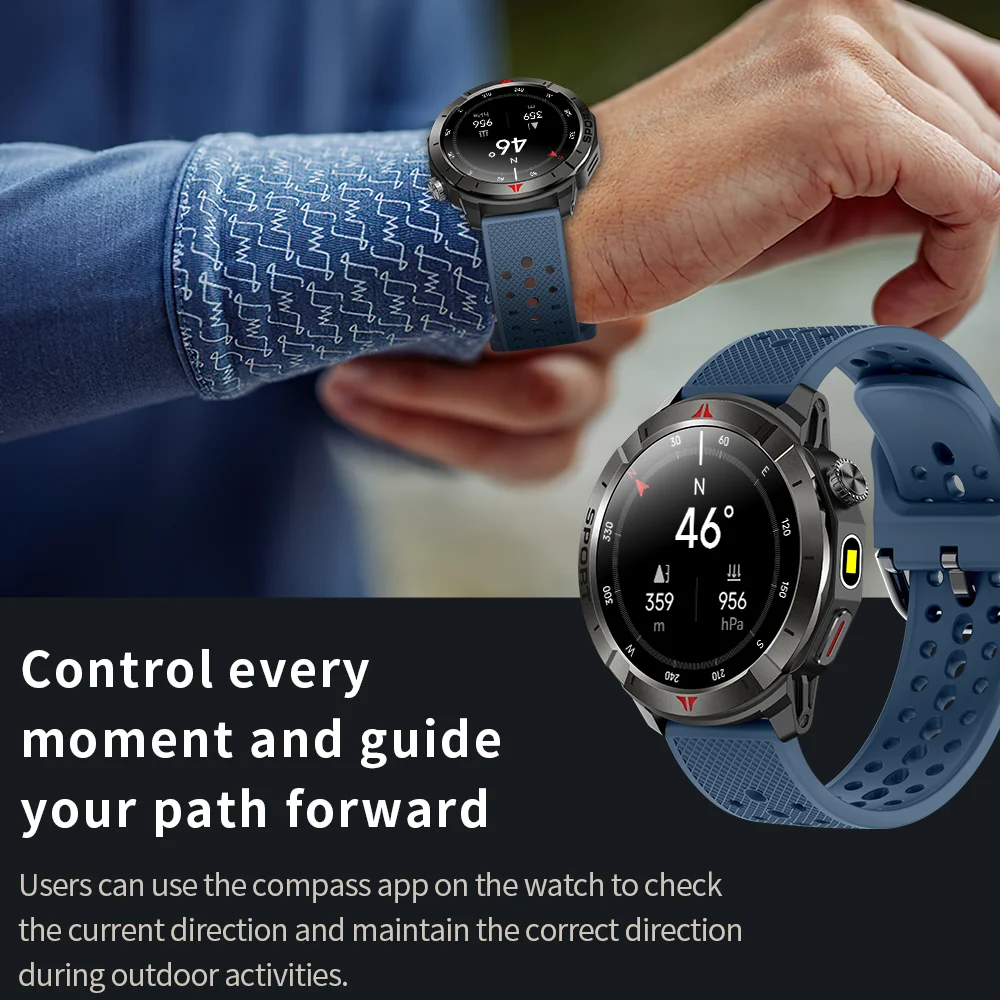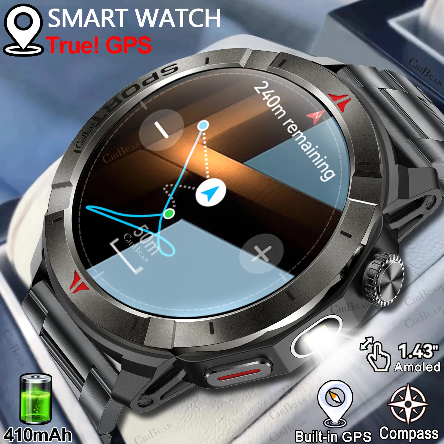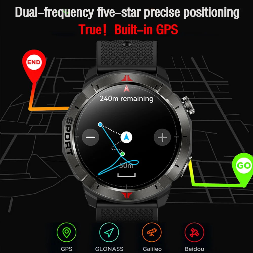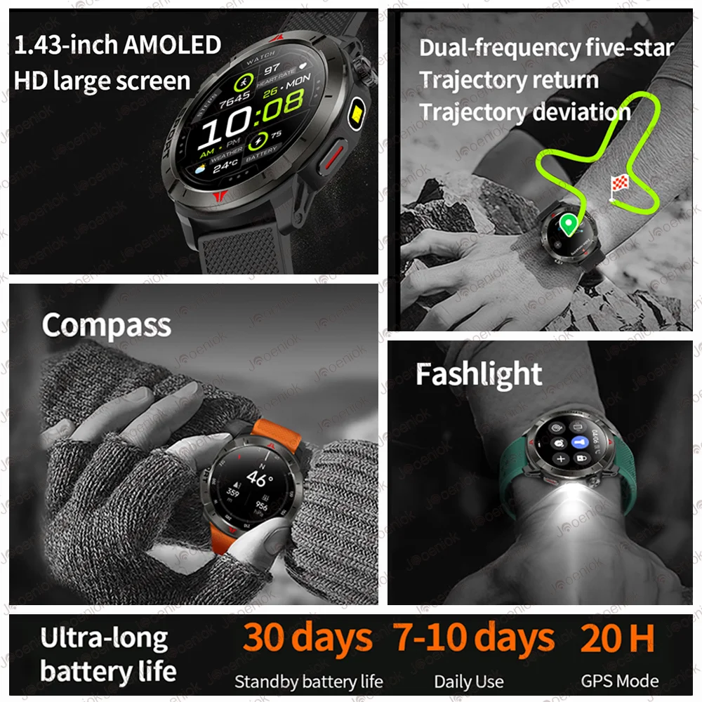 Military Built-in GPS Smart Watch Men Gift 4GB RAM 1.43″ AMOLED Screen Compass LED Light 410mAh Battery Sport BT Call Smartwatch
